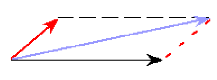 The graphical method of determining the resultant of two forces acting at an angle to each other. The two given forces are represented by the red and black arrows. First construct a parallelogram with the two given forces as sides. The direction and magnitude of the net force is determined by drawing an arrow from the point of application of the given forces to the opposite angle of the parallelogram.