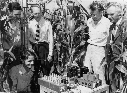 reviewing the instrumentation for a 1950s experiment that measured the heat budget of an Iowa corn field. |