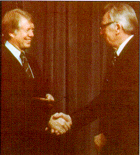 ![]() President Jimmy Carter presents Professor Suomi the National Science Medal in 1972 |