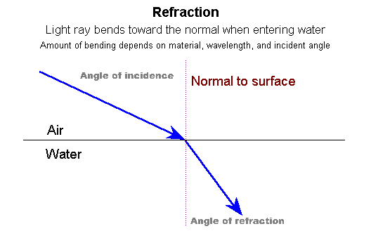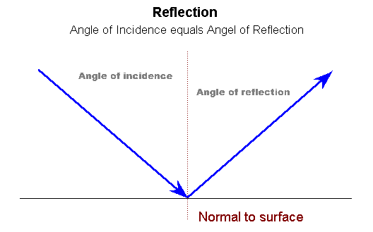 Figure 5.7 The angles of the reflected and refracted rays are a function of the angle of incidence.